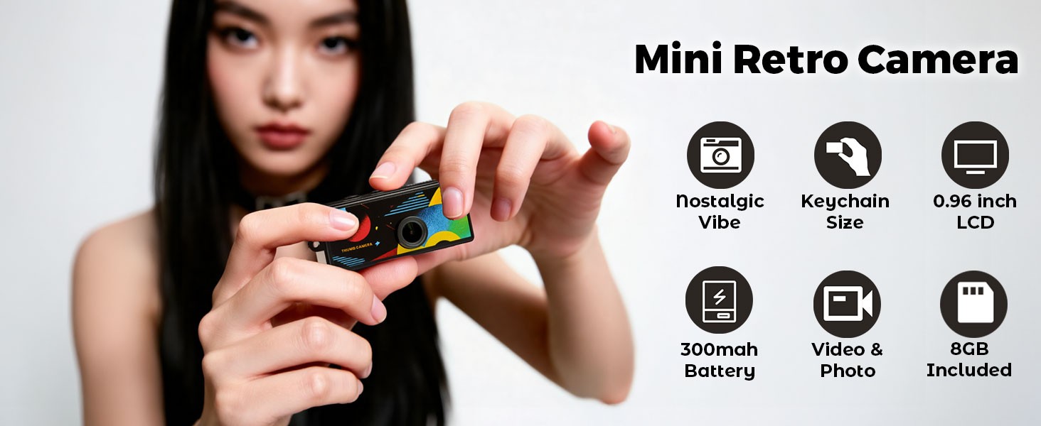 - This miniature camera features a classic camera design packed with functionality, allowing you to capture photos and videos.