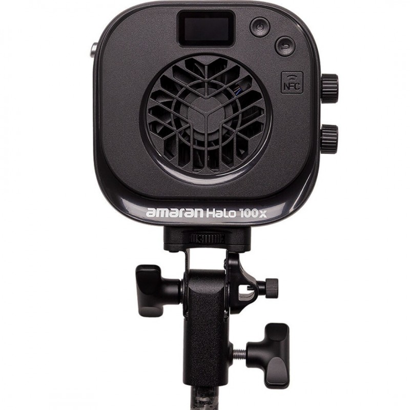 The Halo 100x is a practical lighting solution for content creators and videographers in need of studio-quality light and more output for small spaces. The lighting adjustments can be made onboard with an intuitive TFT screen that has a simplified colored menu or wirelessly from a distance of up to 262' using your smartphone and the amaran app featuring one-tap NFC capability. Different from the previous 100x S, the Halo 100x runs using an included AC to DC adapter, via USB-C PD input, or with the optional amaran Peak series.