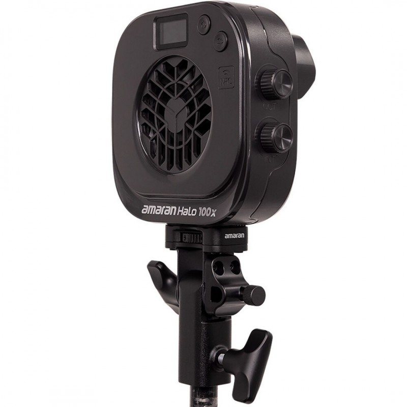 On the face of the unit is a reinforced full-size Bowens mount that is compatible with an optional mini reflector, mini Fresnel, and a wide array of Bowens mount modifiers. amaran also includes a 1/4"-20 to baby pin adapter with integrated tilting bracket and an umbrella holder, so you get great compatibility with optional umbrellas and stands. Just as the Halo 60x, amaran kept the 100x model ultra-compact at 5.2 x 4.7 x 2.2" yet widely compatible thanks to its full Bowens mount versatility.