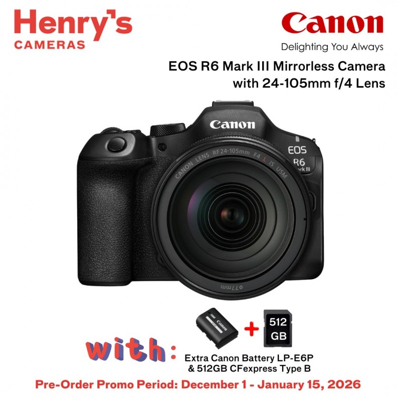 ![Canon EOS R6 Mark III Mirrorless Camera with 24-105mm f/4 Lens [PRE-ORDER] Canon EOS R6 Mark III Mirrorless Camera with 24-105mm f/4 Lens [PRE-ORDER]](https://api.henryscameraphoto.com/image/cache/catalog/CANON%20CAMERA/CSLR-EOSR6IIIKT1/CSLR-EOSR6IIIKT1%20(3)-90x90.jpeg)