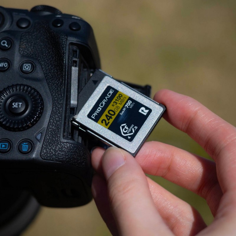 Designed for capturing raw 8K, 6K, and 4K video, the 256GB CFexpress 4.0 Type B Gold Memory Card from ProGrade Digital provides read speeds of up to 3100 MB/s, which helps to quickly offload content to your computer, and write speeds of up to 1600 MB/s. Additionally, the Gold has a minimum sustained write speed that is guaranteed not to drop below 700 MB/s. This card is well suited to capture 8K, 6K, and 4K video, raw photos and continuous image bursts, and more.
