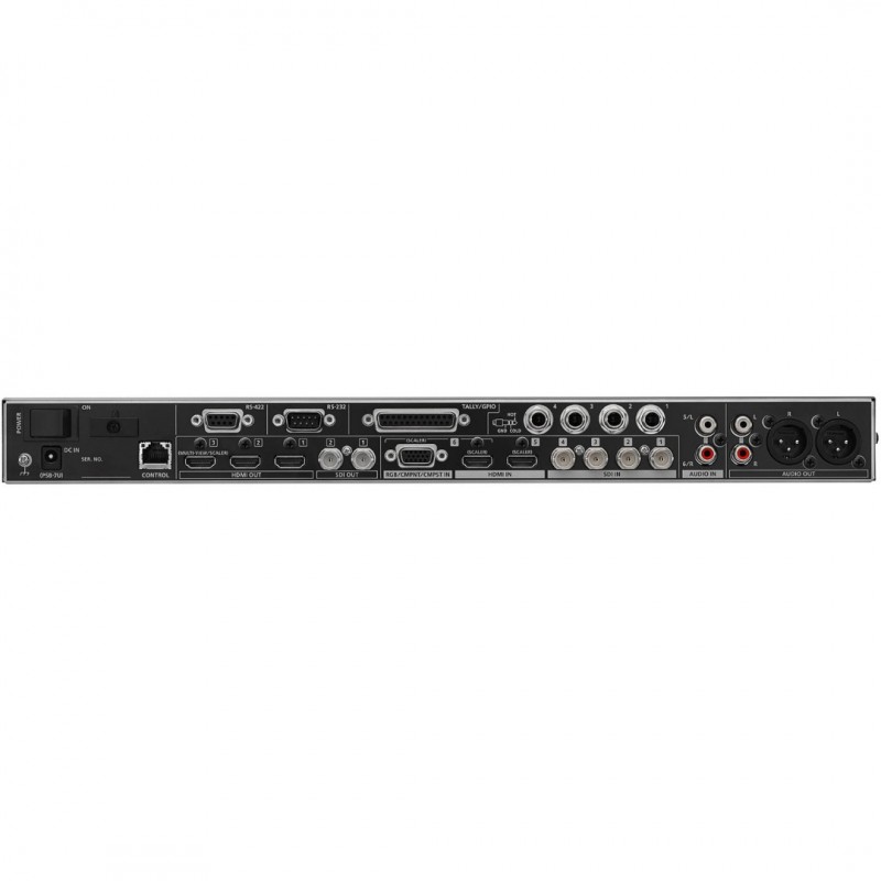 | Formats | Output: SDI Output 1-2: Conforms to SMPTE 296M, 274M HDMI Output 1-2: 1080p: 59.94/50 1080i: 59.94/50 720p: 59.94/50 HDMI Output 3 (Multiview): 1080p: 59.94/50 HDMI Output 3 (Scaler): 1080p: 59.94/50 720p: 59.94/50 576p: 50 480p: 59.94 SVGA (800 x 600, 60 Hz) XGA (1024 x 768, 60 Hz) WXGA (1280 x 800, 60 Hz) SXGA (1280 x 1024, 60 Hz) FWXGA (1366 x 768, 60 Hz) SXGA+ (1400 x 1050, 60 Hz) UXGA (1600 x 1200, 60 Hz) WUXGA (1920 x 1200, 60 Hz) |