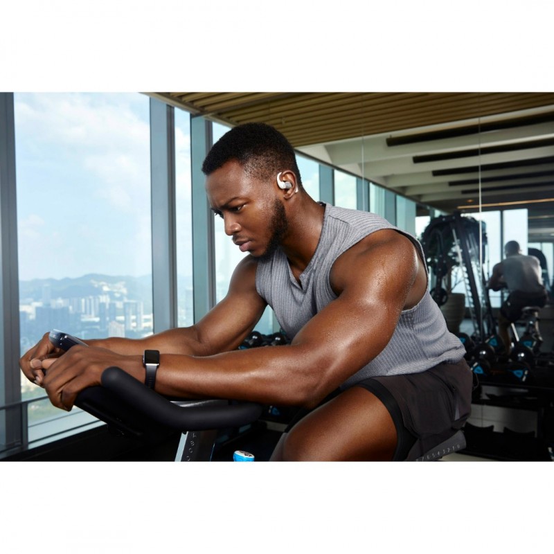 The large oval-shaped 11x20mm dual-diaphragm drivers are tuned for exceptional sonic precision. Dolby Atmos support with head tracking brings your tracks to life, immersing you in 3D sound. With the Qi-wireless-compatible charging case, you can get up to 50 hours of playback, and a quick 10-minute charge yields an impressive four hours of playback in a pinch. An IP55 rating ensures these earphones are resistant to water and dust. The OpenFit Pro headphones include a wireless charging case, extra ear support accessories, and a USB-C charging cable.