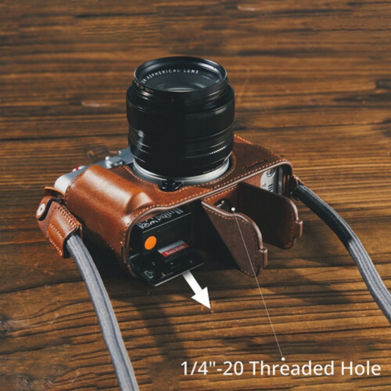 Keep your FUJIFILM X-E5 protected and ready for shooting with this stylish Leather Half Case Kit from SmallRig. It includes a vintage-style braided shoulder strap and a partial camera case with an integrated foam grip for secure handling. The case has a microfiber suede lining to protect your camera's finish and built-in access keeps all ports available, including the battery compartment, focus ring, memory card slot, and more. A built-in 1/4"-20 connector allows you to attach your camera to a tripod without removing the case.