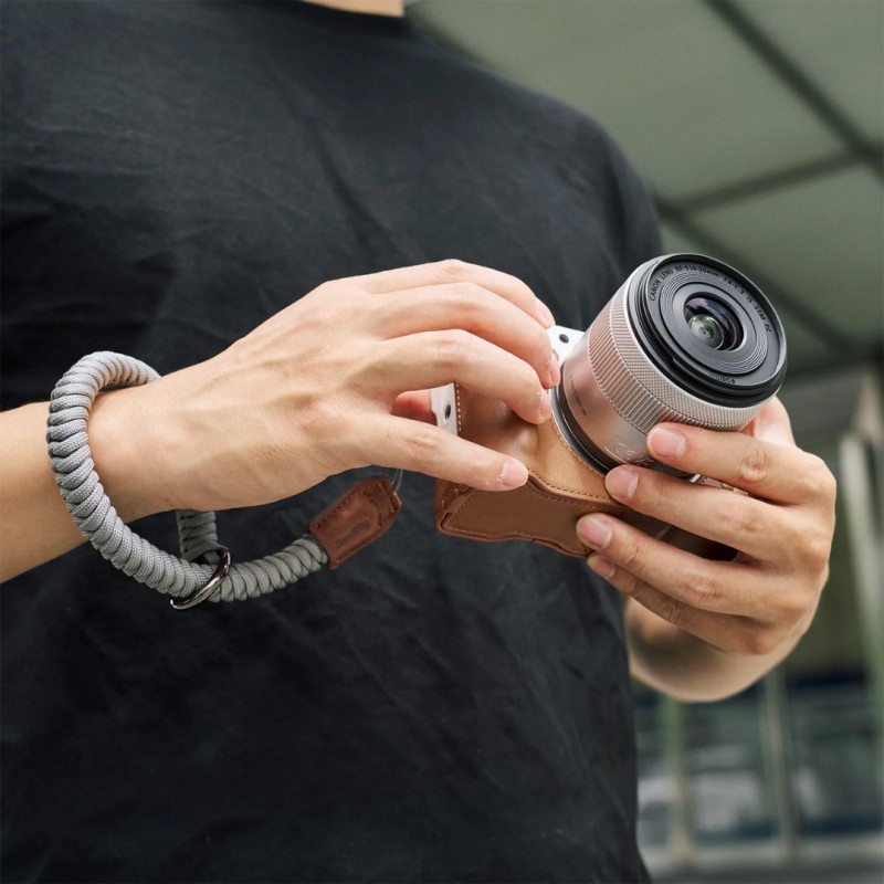 Keep your Canon EOS R50 V mirrorless camera protected in this Leather Half Case from SmallRig. It provides a comfortable and stable grip and has a microfiber suede lining to protect against scratches. The case maintains access to all ports, including the REC button, battery compartment, memory card slot, and vertical threaded mounting hole. The stylish woven wrist strap has an adjustable length and supports up to 22 pounds.
