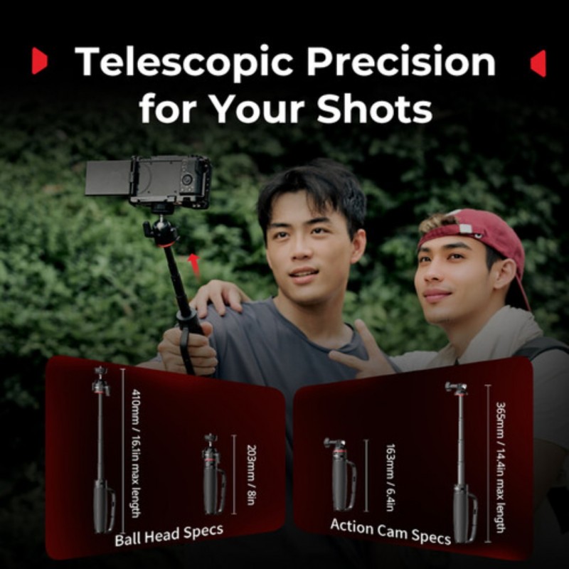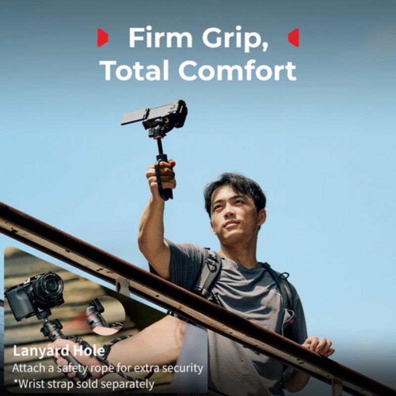 The VT-15 Carabiner Tripod from SmallRig features an innovative carabiner grip with an integrated mantis hook that allows the tripod to be clipped to backpacks, fences, and more for easy transportation and unconventional angles. The four-section telescoping center column gives a maximum height of 16.1" and allows the tripod to be used as a selfie stick. An adjustable cold shoe mount makes it easy to add accessories.
