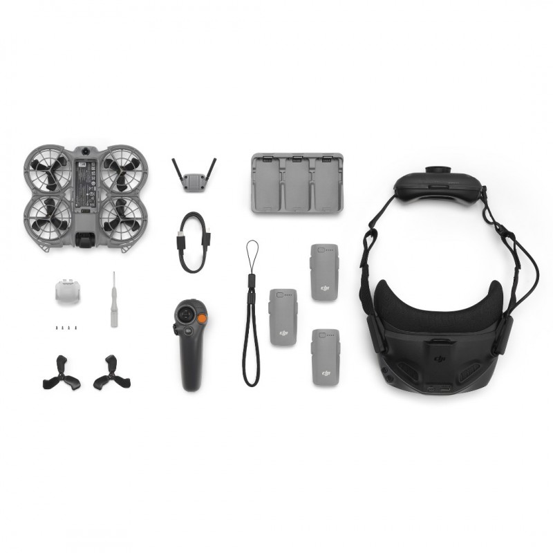 | In The Box | DJI Neo 2 Aircraft, DJI RC Motion 3, DJI Goggles N3, DJI Neo 2 Intelligent Flight Battery, DJI Neo 2 Two-Way Charging Hub, DJI Neo 2 Spare Propellers (Pair), DJI Neo 2 Spare Propeller Screw, Screwdriver, DJI Neo 2 Propeller Guard (Pair), DJI Neo 2 Digital Transceiver, DJI Neo 2 Gimbal Protector, USB-C to USB-C Data Cable, Documents (Quick Start Guide, Safety Guidelines, and DJI Logo Stickers) |