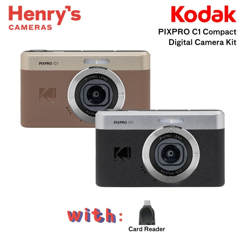 The PIXPRO C1 Compact Digital Camera from Kodak is a vintage-style point-and-shoot fixed lens with capable modern internal hardware. Between the 26mm f/2 fixed focus wide-angle lens and the 13 MP 1/3" BSI CMOS sensor, it's simple to make crisp, colorful photos in a variety of lighting situations. The camera has a built-in flash and an 2.8" LCD screen that tilts 180° for taking selfies or shooting from any angle. It captures video, recording scenes in 30 or 60 fps at 1920 x 1080 Full HD. Recharge the internal battery with the included USB-C cable, so you're always ready for spontaneous shoots.