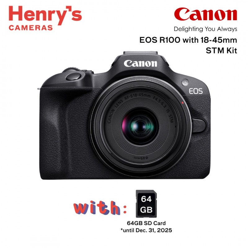 In The Box Canon EOS R100 Mirrorless Camera, Canon LP-E17 Lithium-Ion Battery Pack, Canon LC-E17 Charger for LP-E17 Battery Pack, Neck Strap, Canon RF-S 18-45mm f/4.5-6.3 IS STM Lens