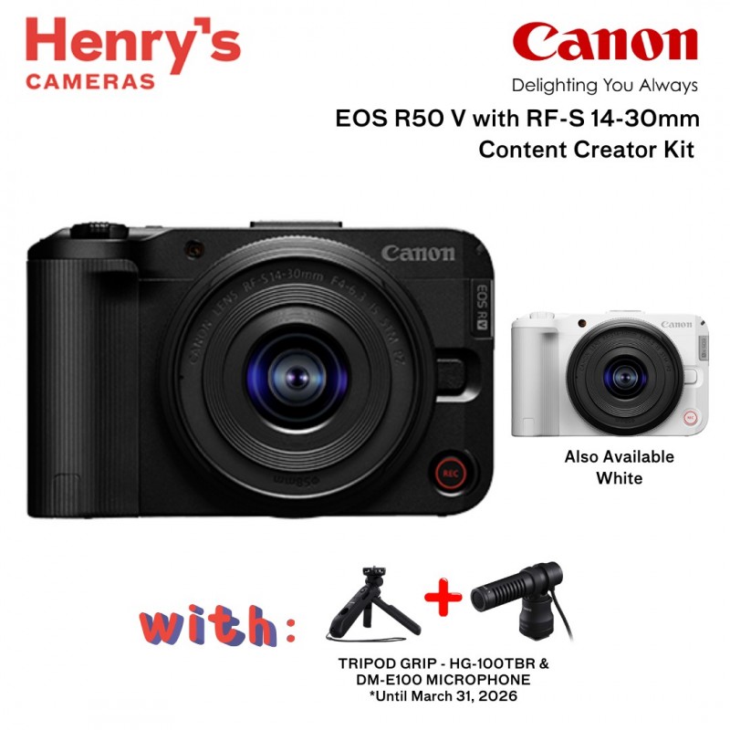 Neck Strap, Canon RF-S 14-30mm f/4-6.3 IS STM PZ Lens (Canon RF), Canon E-58 II Lens Cap, Canon Lens Dust Cap RF, Tripod Grip HG-100TBR, DM-E100 Microphone |