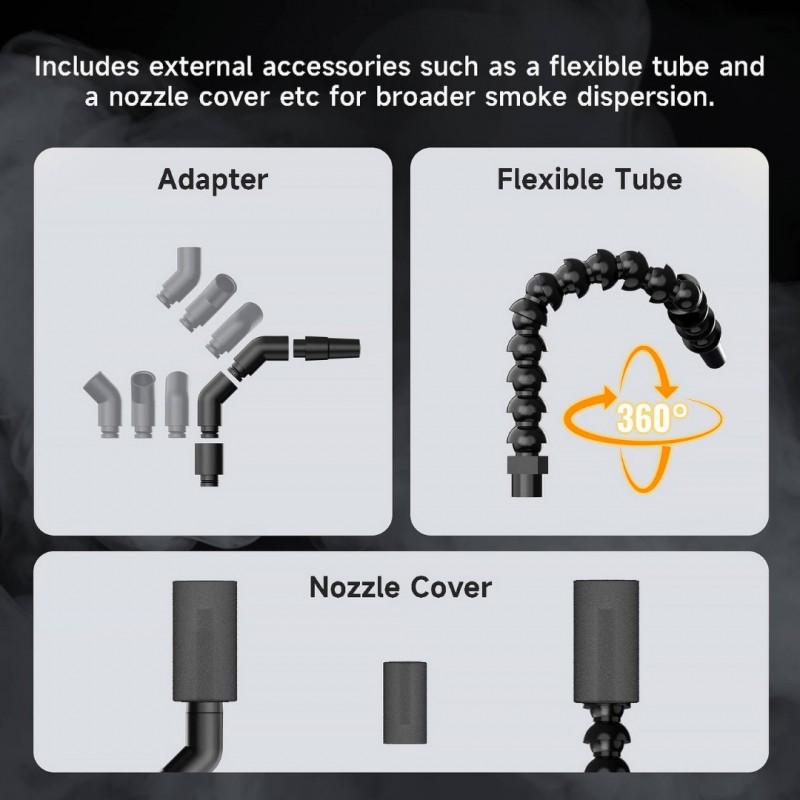 • Flexible hose and nozzle cover for broader smoke dispersion